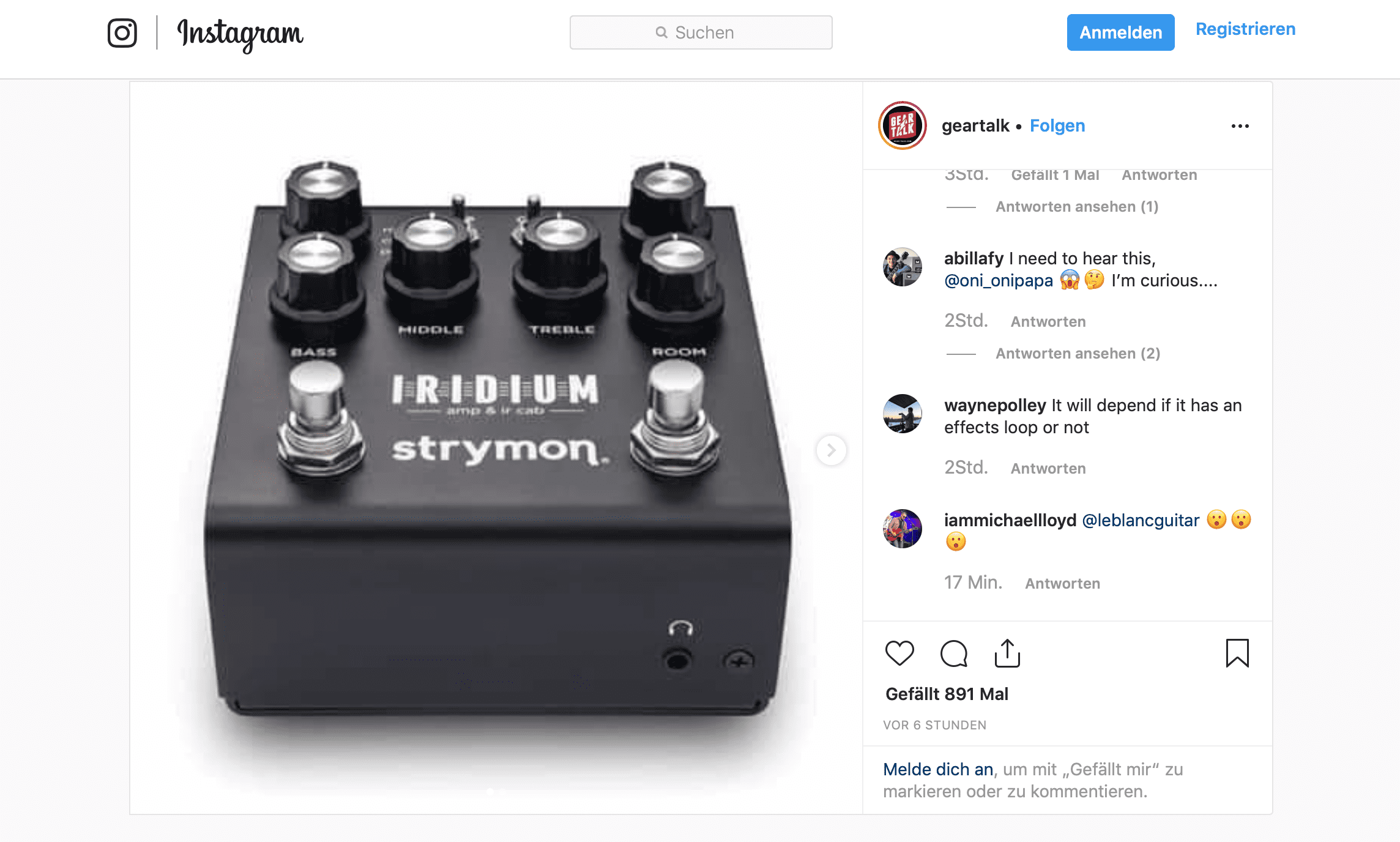 Der Instagram-Kanal Geartalk hat schon mal ein erstes Bild in brauchbarer Auflösung gepostet. Was ist alles zu erkennen? Nun, zunächst einmal der Name: IRIDIUM.Für mehr Aufruhr in der Gitarrenszene sorgt die kleine Schrift darunter: „amp & ir cab“ steht dort geschrieben.